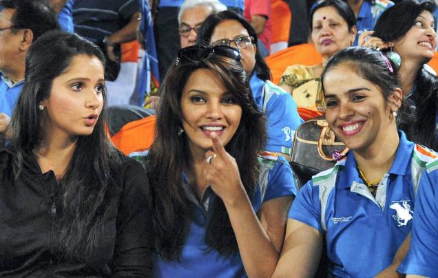 Former Miss World Diana Hayden was seen chatting away with badminton champ Saina Nehwal and tennis star Sania Mirza. It was indeed a treat for the crowds to watch two aces in the company of a beauty queen!
